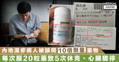 【醫生誤診?】內地濕疹男被醫生誤開「10倍劑量」藥物,每次服廿粒藥致5次休克、心臟驟停。