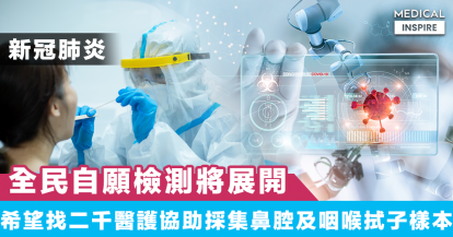 【新冠肺炎】全民自願檢測將於本月底展開,政府望找約二千名醫護協助採集鼻腔及咽喉拭子樣本。
