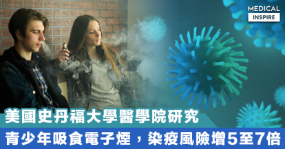【新冠肺炎】史丹福大學醫學院研究:青少年吸食電子煙,染疫風險增5至7倍。