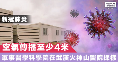 【新冠肺炎】中國研究團隊在武漢火神山醫院環境樣本發現,新冠病毒可在空氣中傳播至少4米。