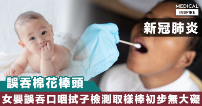 【新冠肺炎】女嬰進行新冠病毒口咽拭子檢測時誤吞棉花棒頭,初步檢查幸無大礙。