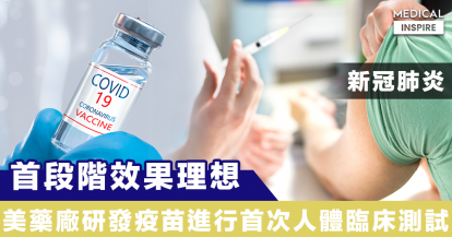 【新冠肺炎】美國藥廠首次人體臨床測試疫苗,首段階實驗效果理想。
