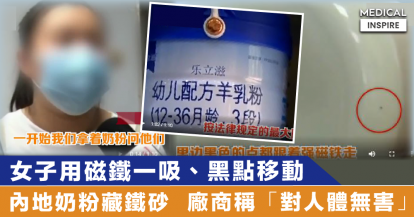 【黑心奶粉】內地奶粉藏鐵砂?女子用磁鐵一吸、黑點移動,廠商稱「對人體無害」。