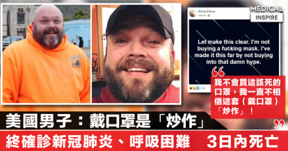 【新冠肺炎】美國男稱「戴口罩是炒作」,終確診新冠肺炎、呼吸困難,3日內不治身亡。