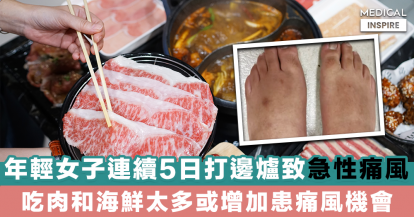 【痛風發作】年輕女子連續5日打邊爐致急性痛風,吃肉和海鮮太多或增加患痛風機會。