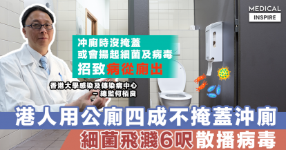 【港大研究】港人用公廁四成人不掩蓋沖廁,細菌飛濺6呎污染廁格可散播病毒。