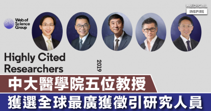 【學術榮譽】中大醫學院5位教授全球獲選「2019最廣獲徵引研究人員」,學術成就驕人。