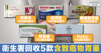 【小心選擇!】衛生署回收5款胃藥,含有含雷尼替丁致癌物質。