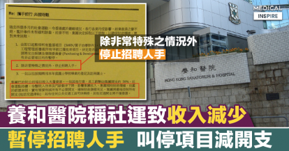 【修例風波】養和醫院稱社運致收入減少,會暫停招聘人手、叫停非必要項目。