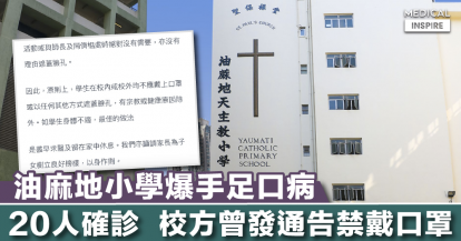 【注意衞生】油麻地一小學爆發手足口病、20人確診,校方曾發通告禁戴口罩。