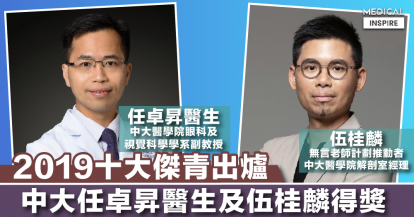 【傑出貢獻】2019十大傑青出爐,中大眼科副教授任卓昇醫生及「無言老師」計劃推動者伍桂麟得獎。