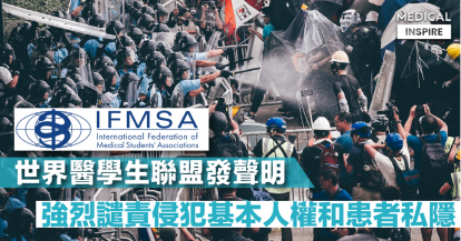 【逃犯條例】世界醫學生聯盟:「香港的人權受到威脅」強烈譴責侵犯基本人權和患者私隱行為。