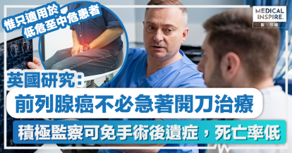 前列腺癌 │ 英國研究:前列腺癌不必急著開刀治療,積極監察可免手術後遺症且死亡率低。