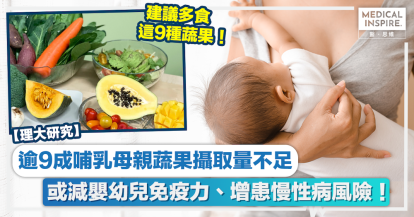 母乳營養|逾9成哺乳母親蔬果攝取量不足 或減嬰幼兒免疫力、增患慢性病風險!