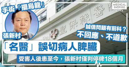 醫療失誤 │ 泌尿外科「名醫」誤切病人脾臟 受害人後患症至今未癒,張新村僅判停牌18個月