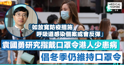 口罩令|袁國勇研究指戴口罩令港人少患病 倡冬季仍維持口罩令