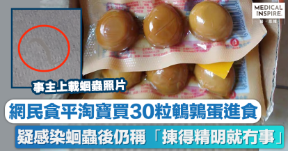 食品安全|網民貪平淘寶買30粒鵪鶉蛋進食 疑感染蛔蟲後仍稱「揀得精明就冇事」