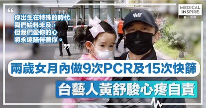 疫下生活│兩歲女1個月內做9次PCR及15次快測、台灣藝人黃舒駿心疼自責!