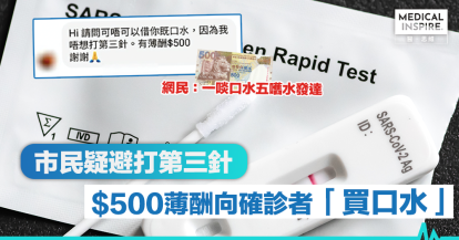 【疫苗通行證】疑為避打第三針 陌生人$500薄酬向確診者買口水