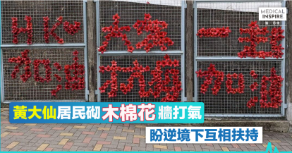 【疫下正能量】鑽石山培敦中學外現木棉花牆 居民砌打氣字句互相鼓勵