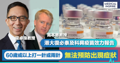【疫苗效力】港大發表復必泰與科興效力報告 60歲或以上打一針或兩針無法預防出現症狀