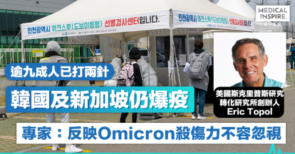 【疫情數據】韓國及新加坡逾九成人已打兩針仍爆疫 專家:反映Omicron殺傷力不容忽視