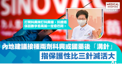 【宣布溝針】內地調整疫苗策略 建議接種兩劑科興或國藥人士第三針可「溝針」