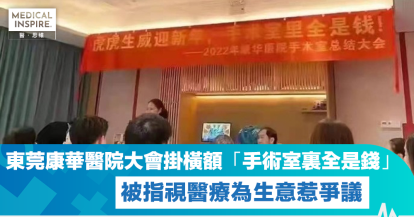 【內地醫療】東莞康華醫院總結大會 掛橫額稱「手術室裏全是錢」引熱議