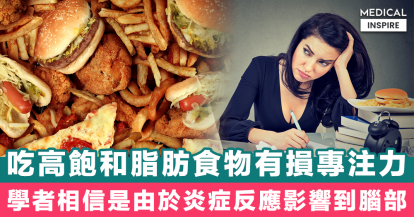 【美國研究】吃高飽和脂肪食物有損專注力,學者相信是由於炎症反應影響到腦部。