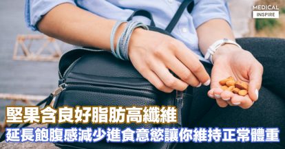 【體重控制】堅果含良好脂肪、高纖維有助延長飽腹感;減少進食意慾讓你維持正常體重。