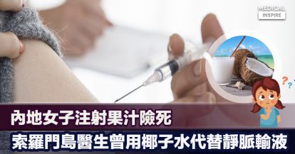 【身體排毒】中國女子盲目養生將果汁輸入靜脈險死;索羅門島醫生為病人注射椰子水續命。