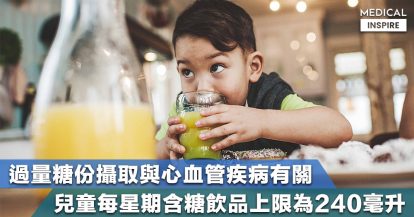 【兒童安全】兒童攝取過量糖份與心血管疾病有關,每星期不應飲用超過240毫升含糖飲品。