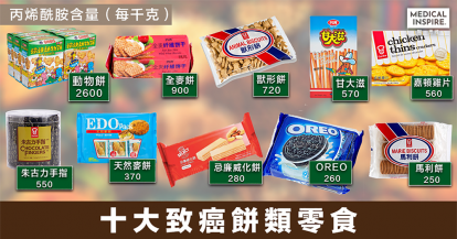 【食物安全】餅乾及餅類零食中丙烯酰胺可致癌,動物餅含量比其他多出超過3倍。