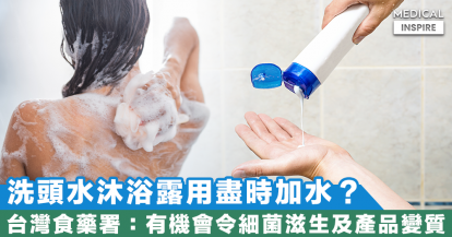 【產品變質】台灣食藥署:洗頭水、沐浴露用到盡時加水稀釋,做法有機會令細菌滋生。