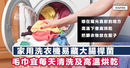 【衛生提示】家用洗衣機易藏大腸桿菌,毛巾宜每天清洗及高溫烘乾。