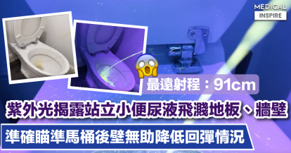 【男士注意】紫外光揭露站立小便尿液飛濺地板、牆壁,最遠彈至91厘米。