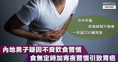 【飲食習慣】江蘇28歲男子食無定時,一年逾200次宵夜,因胃痛揭已患末期胃癌。
