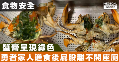 【食物安全】蟹膏呈現綠色,勇者家人進食後屁股離不開座廁。