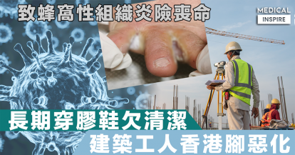 【致命足癬】長期穿膠鞋欠清潔,建築工人香港腳惡化致蜂窩性組織炎險喪命。