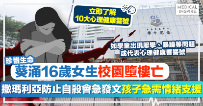 珍惜生命|16歲女生校園墮樓亡,撒瑪利亞防止自殺會急發文:孩子急需情緒支援