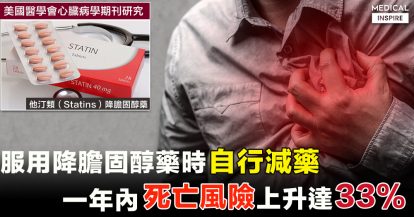 【藥物安全】心臟病人若服用他汀類降膽固醇藥時自行減藥,一年內死亡風險上升達33%。
