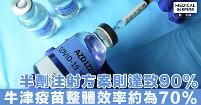 【新冠疫苗】牛津疫苗整體效率約為70%,半劑注射方案則達致90%。