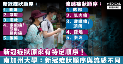 【新冠肺炎】新冠症狀原來有特定順序!南加州大學分析5.5萬病例,證新冠症狀順序與流感不同。