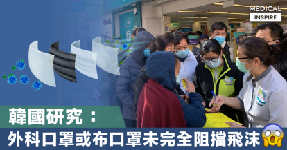 【口罩無用?】韓國研究:外科口罩或布口罩未能完全阻擋確診者的咳嗽飛沫。