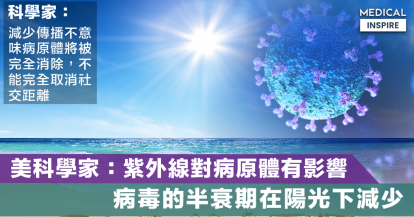 【新冠病毒】美科學家:紫外線對病原體有影響,病毒的半衰期在陽光下減少。
