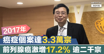 【頭號殺手】2017年癌症個案3.3萬宗創新高,大腸癌為十大癌症之首,前列腺癌按年增17.2%。