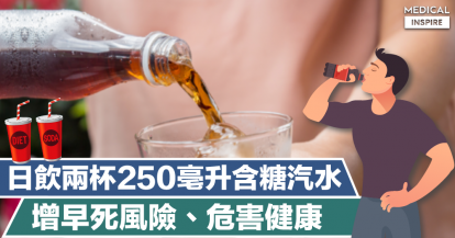 【少飲為妙】世衛研究:日飲兩杯250亳升含糖或人工甜味劑汽水增早死風險。