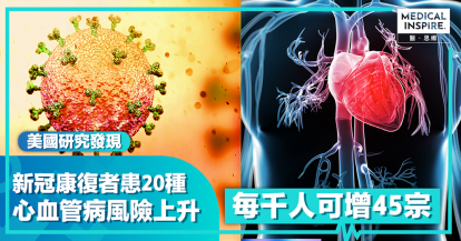 【美國研究】新冠康復者一年後增患20種心血管疾病風險 研究指每1000人增45宗個案