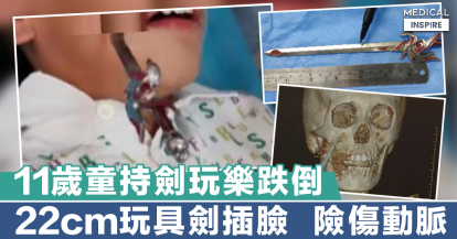 【玩具陷阱】11歲男童跌倒22厘米玩具劍插臉、僅離動脈3毫米。