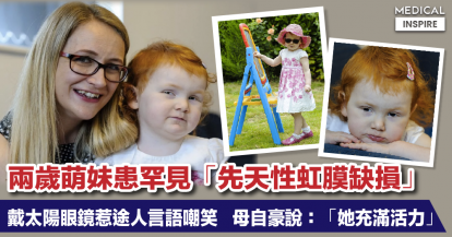 【生命滿希望】兩歲英國萌妹患罕見先天性虹膜缺損,外出戴帽及太陽眼鏡擋光,惹途人言語嘲笑。